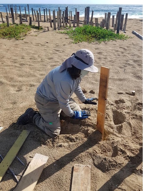 Iniciamos la actividad observando el perfil de la playa para determinar los lugares adecuados para sembrar las tablas que facilitarán la formación de dunas. Además de colocar las tablas, sembramos verdolagas rosadas (Sesuvium portulacastrum), bejuco puerto (Ipomoea pes-caprae) y otras plantas propias del ambiente costero. Fue una actividad especial, ya que en este proyecto colaboró un grupo diverso, compuesto de voluntarios de todas las edades y diferentes intereses profesionales. We began the activity by observing the profile of the beach to determine the appropriate places to place the boards that will facilitate the formation of dunes. In addition to placing the boards, we sowed sea purslane (Sesuvium portulacastrum), beach morning glory (Ipomoea pes-caprae) and other tropical plants typical of the coastal environment. This was a special activity, as it included a diverse group, made up of volunteers of all ages and different professional interests who collaborated together.