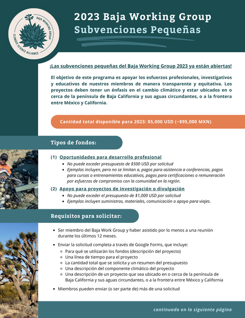 ¡Las Subvenciones Pequeñas del Baja Working Group 2023 ya están abiertas!